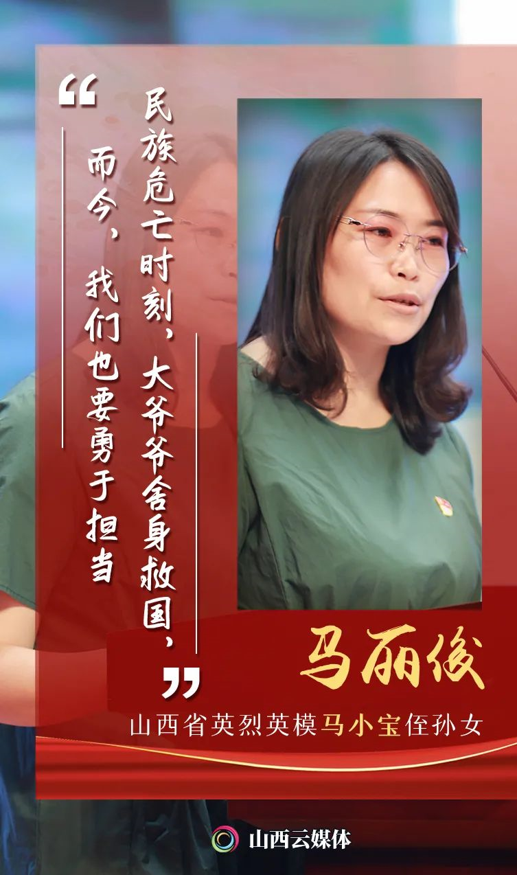 “大爷爷十七岁那年,为了党的革命事业,为了人民的解放,勇敢地献出了自己年轻而宝贵的生命,把生命永远定格在了十七岁的青春。今天,我们生逢这个伟大的时代,面对实现中华民族伟大复兴中国梦的光荣使命,我相信我们这一代年轻人也同样能不辱使命,不负众望,担当起我们应有的担当。”