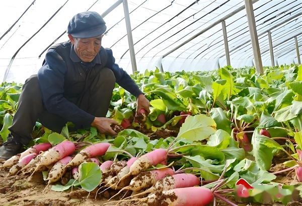 蔬菜大棚里萝卜长势喜人 记者 杨洋 摄