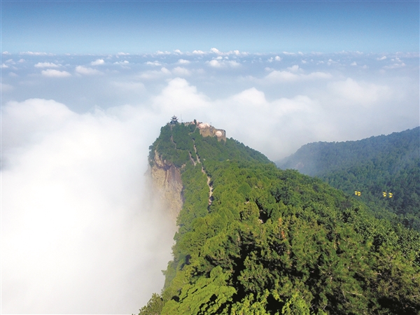 介休绵山横跨介休、灵石、沁源三地边界,是太岳山脉的一支,地处汾河之阴,最高海拔超过2560米。这里的景点大多都处于悬崖峭壁之上,气势恢宏,异常壮观。山中有许多古栈道,云雾缭绕之时,漫步于绵山栈道之上,恍若穿行于仙境云海之间,那一刻,尘世纷扰瞬间消散。
