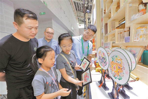第七届山西文博会上,昔阳非遗作品吸引游客驻足欣赏。本报记者 耿新洲 摄