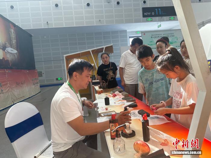 在“文明号”移动博物馆外,还设置有互动式非遗体验区,来自临汾市的平水雕版印刷、平阳传拓、平水古籍修复技艺匠人,现场与游客进行互动,吸引众人围观、体验。