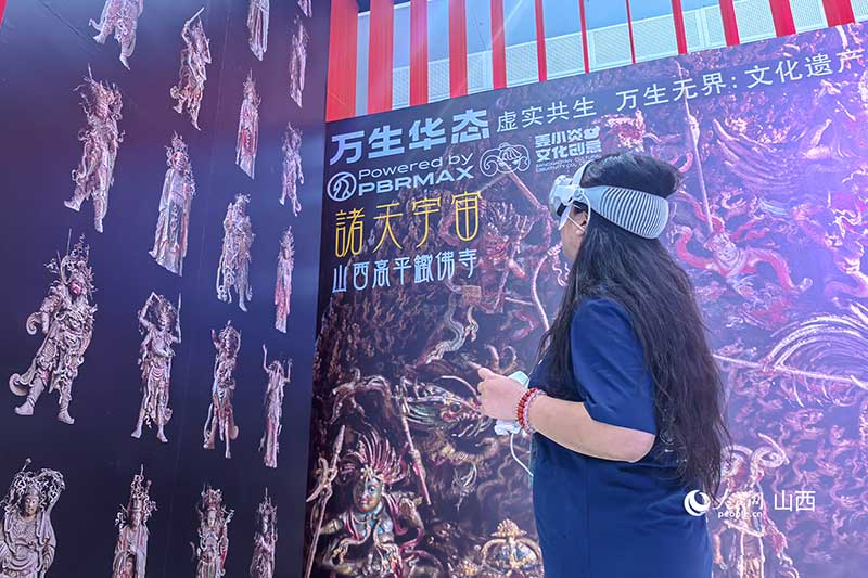 游客漫步虚拟空间“游览”山西高平铁佛寺。人民网记者 王晏如摄