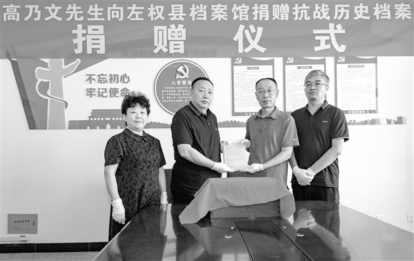 这是一沓泛黄的纸张,经过80多年岁月侵蚀已有残缺,但上面蓝黑色的字迹清晰可辨,这是83份珍贵的八路军第129师卫生部《死亡诊断书》。8月19日,来自左权县的高乃文和田建林向左权县档案馆正式捐赠八路军第129师卫生部83名英烈的《死亡诊断书》。这些珍贵档案是抗日英烈们浴血奋战,直至生命最后一刻的无声见证,也必将成为后人触摸那段烽火岁月、赓续抗战精神沉甸甸的实物载体。