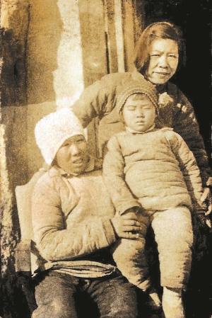 辽县第一任女县委书记陈舜英(右一)与女儿、奶娘刘捧合影