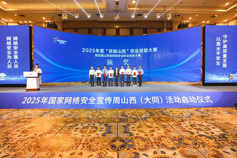 启动仪式上,推出了山西网络安全代言人“晋小安”3D虚拟数字人形象,以科技化、趣味化方式普及网络安全知识。现场发布“山西网安—2025”网络安全攻防演练情况、“净网2025”“护网2025”专项行动工作成效,为“技能山西”职业技能大赛——第四届山西省网络安全职业技能大赛获奖选手颁奖。大同市第五人民医院“网络资产安全治理”项目作为网络安全典型案例进行经验分享,该项目成功入选国家网络安全技术应用典型案例。