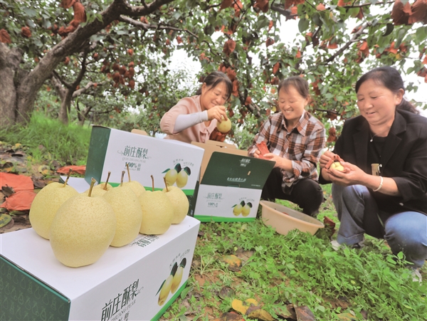 靠着“一代人接着一代人干”的韧劲,前庄酥梨一步步打响了名号。2008年,前庄酥梨拿下农业农村部和省农业厅颁发的无公害农产品证书,还注册了“前庄金蜜”品牌。如今,前庄村梨产业种植面积达1000余亩,年产梨400余万斤,产值超600万元,更攒下了一大批“回头客”。