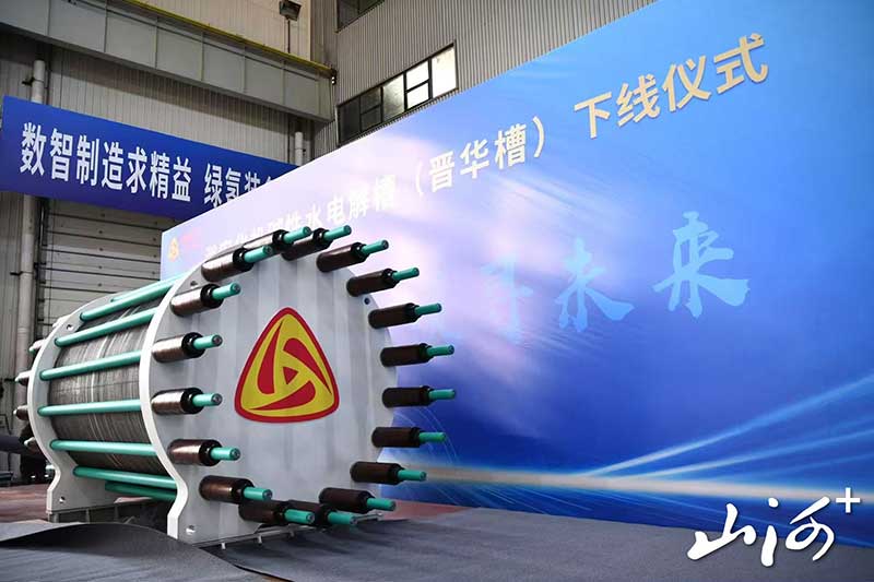 “近年来山西省积极布局氢能产业,潞安化工机械集团作为‘先行者’在发展氢能技术上不断突破。此次研发主要围绕低能耗、强波动碱性电解水制氢集成系统开展联合攻关,同时与国内知名智能化装备设计制造企业合作,融合自动控制、声光电检测、AI算法、云平台和MES管理系统,建设了山西省首条GW级(100台/年)自动化生产线,最终成功研制‘晋华槽’。”潞安化工机械集团党委书记、董事长任金锁介绍道。