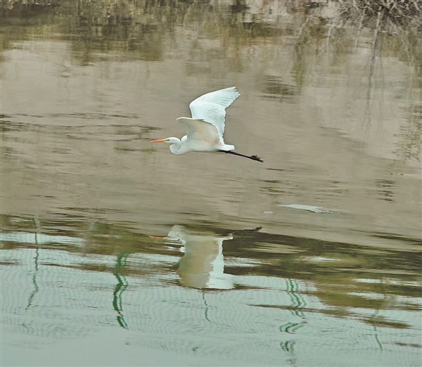 11月1日,太谷凤凰山森林公园的一座蓄水池边,迁徙而来的白鹭在水面上低空掠过。随着气温逐渐下降,太谷湿地公园再次迎来了各种迁徙候鸟,白鹭、苍鹭、白天鹅、鸬鹚等纷纷在此落脚栖息。