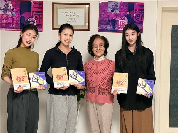 交流过程中,3名北舞学子始终全神贯注,一边认真记录知识点,一边用录像设备留存珍贵的讲解与示范内容,学习态度十分端正。李明珍、刘瑞琪二人还向学生们赠送了二人合著的1992年版与2015年版《左权小花戏》专著。这部凝聚着夫妇二人毕生心血的著作,系统梳理了左权小花戏的舞蹈、音乐、文化等全维度内容,是该非遗项目传承与研究的核心典籍。