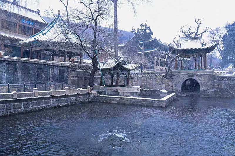 冬雪中的晋祠难老泉复流。董继泽摄。