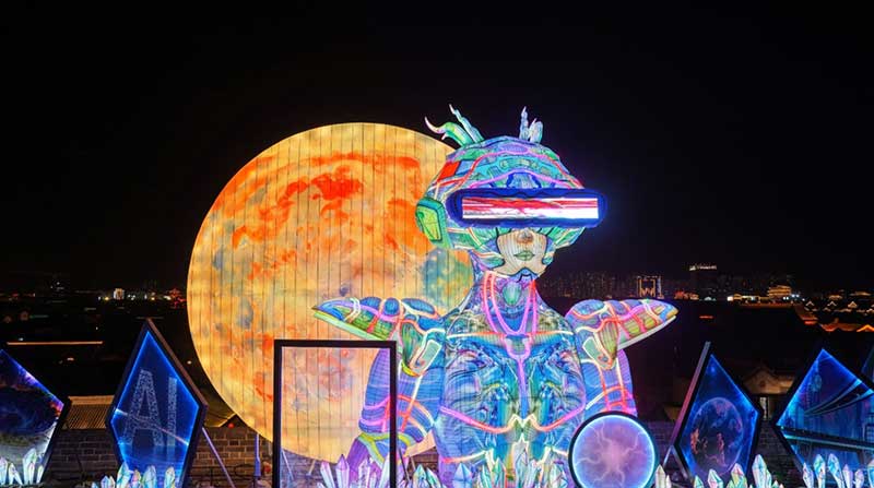 2月10日起,大同古城精心布置了大型主题彩灯,这些彩灯融合了大同厚重的历史文化元素与现代科技光影技术。