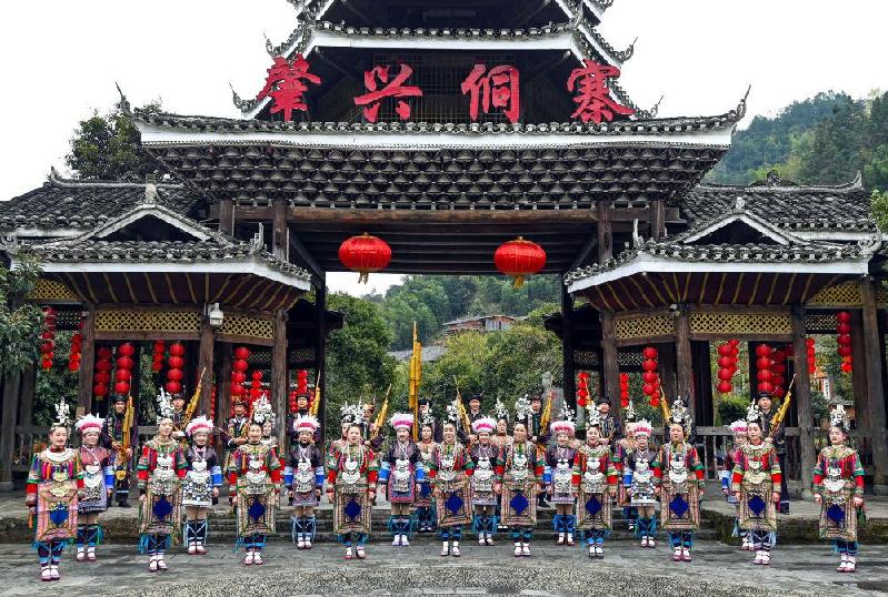△2025年3月,侗族群众在贵州黎平县肇兴侗寨给游客演唱侗族大歌。