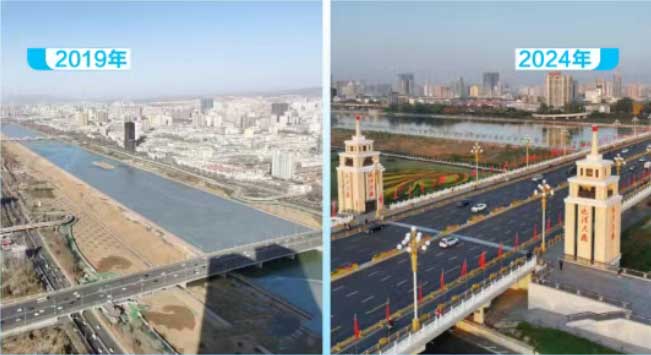 今年赴京参会前,王润梅在朋友圈发了两张对比照:左边是2019年,右边是2024年。同一座桥——太原迎泽大桥,同一个位置,桥下的水从浊到清,桥上的路从旧到新。她配文写道:“出发去北京!带着这座桥、这条河的变化。”