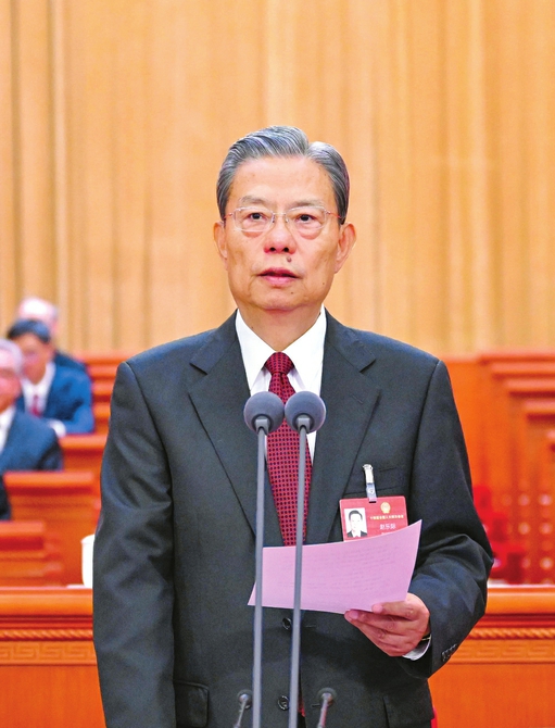 赵乐际说,我们要立足人大职能职责,坚持党的领导、人民当家作主、依法治国有机统一,践行全过程人民民主,坚持好、完善好、运行好人民代表大会制度,切实发挥国家根本政治制度优势,认真履行宪法法律赋予的职责,为实现“十五五”目标任务提供法治保障;人大代表要忠实代表人民利益和意志,依法履职尽责,密切联系群众,在本职岗位上建功立业、作出贡献。