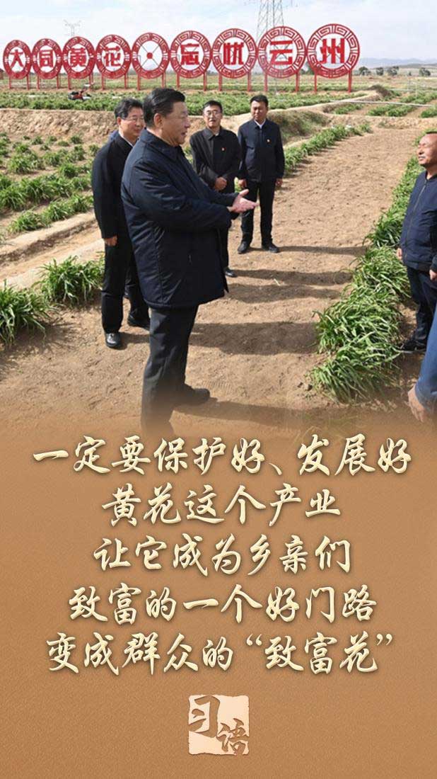 习近平总书记叮嘱当地干部,一定要保护好、发展好黄花这个产业,让它成为乡亲们致富的一个好门路,变成群众的“致富花”。