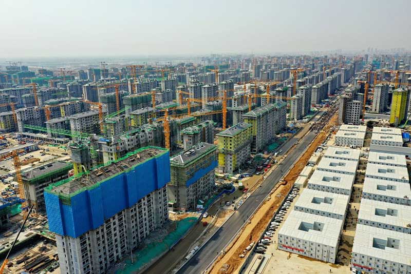 2021年是雄安新区大规模开发建设向纵深发展的关键一年。容东片区是雄安新区开发建设的先行区域,担负着承接北京非首都功能疏解和安置回迁群众的重要任务。这是2021年4月8日拍摄的雄安新区容东片区安置房项目建设现场(无人机照片)。2021年10月,容东第一批安置房开始交付。